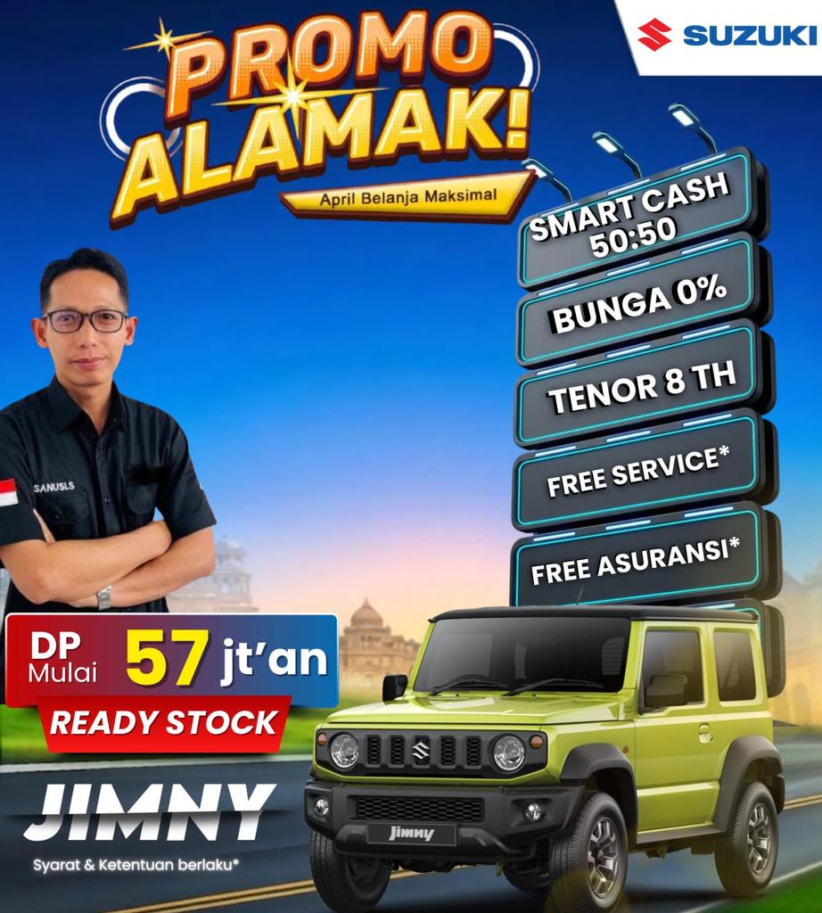 Suzuki Jimny merupakan mobil premium dengan performa berkualitas, sehingga cocok untuk berbagai aktivitas dan Promo Suzuki Jimny Sumedang hadirkan mobil dengan DP ringan.